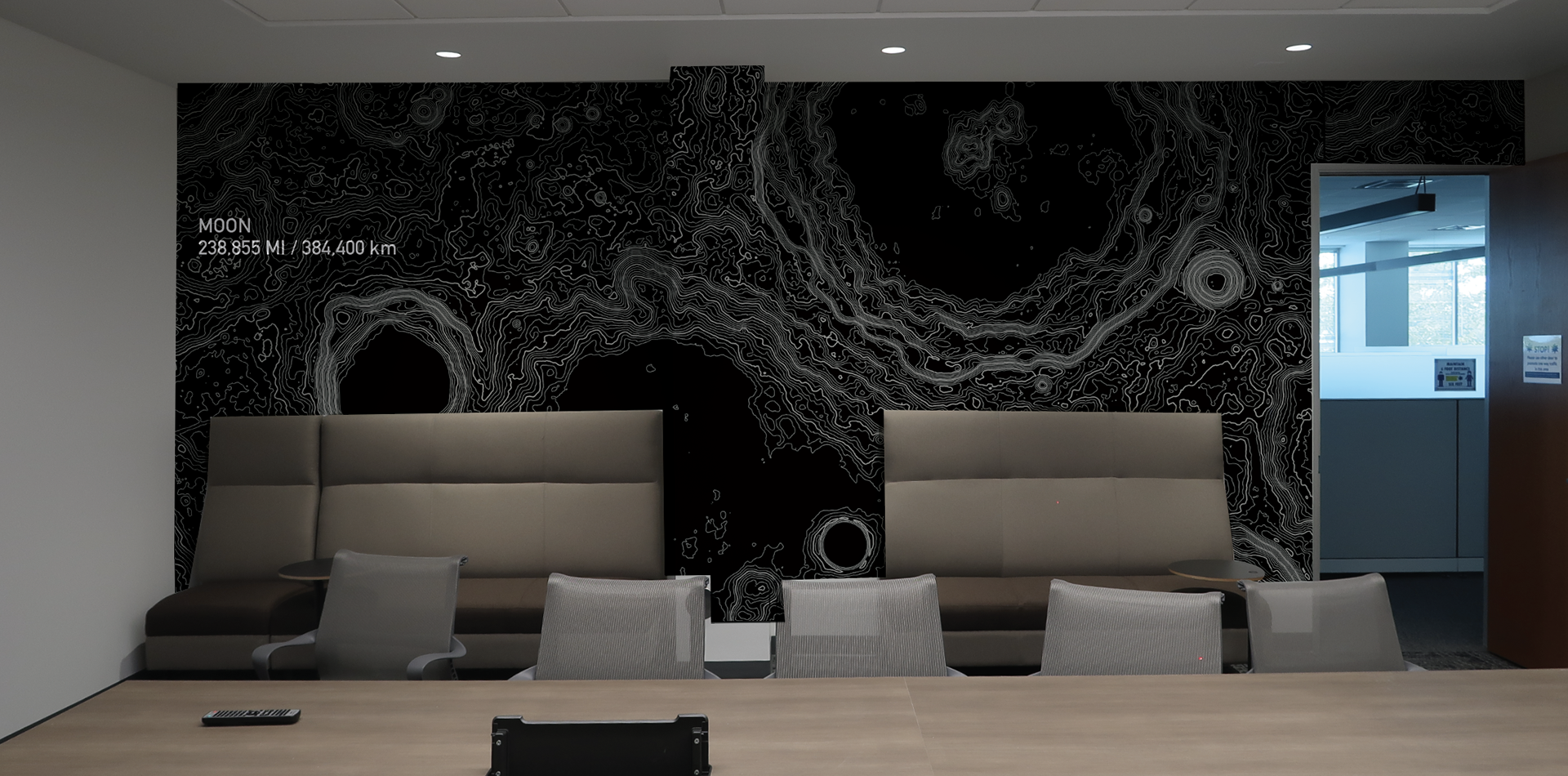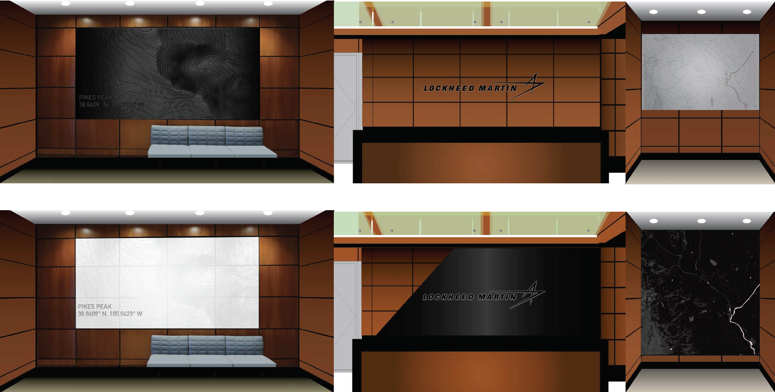 LOCKHEED MARTIN SPACE BUILDING _ENVIRONMENTAL DESIGN AND SIGNAGE EXPLORING TOPOGRAPHY, DIMENSIONALITY, TEXTURE, MATERIALITY OF EARTH, MOON AND MARS.
